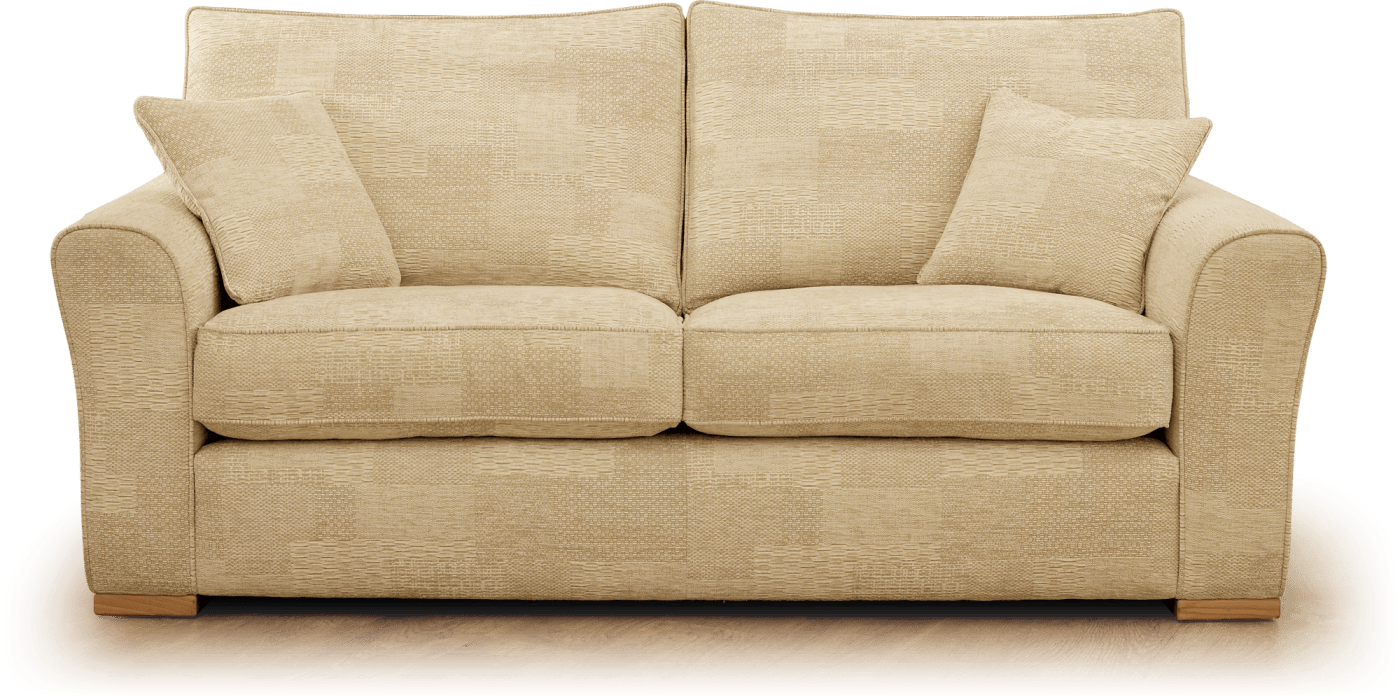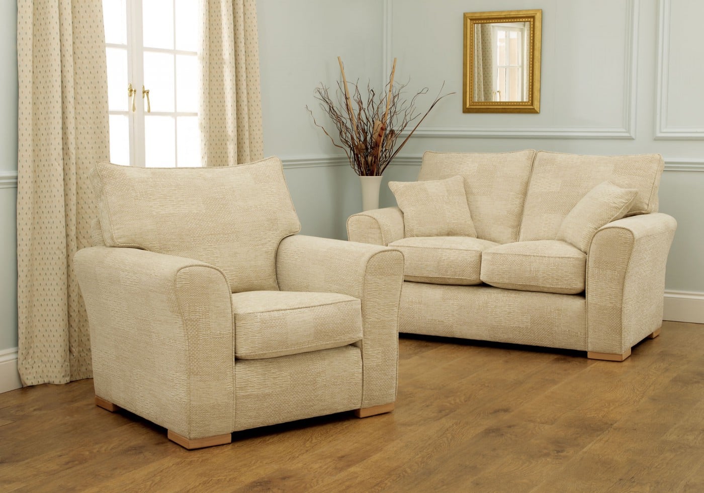 Transitional design and compact in size. Duratech Gold Award, Fira approved fibre seat interiors over steel sprung edge seating unit. Feather back cushions. One pair of scatter cushions per sofa included.
